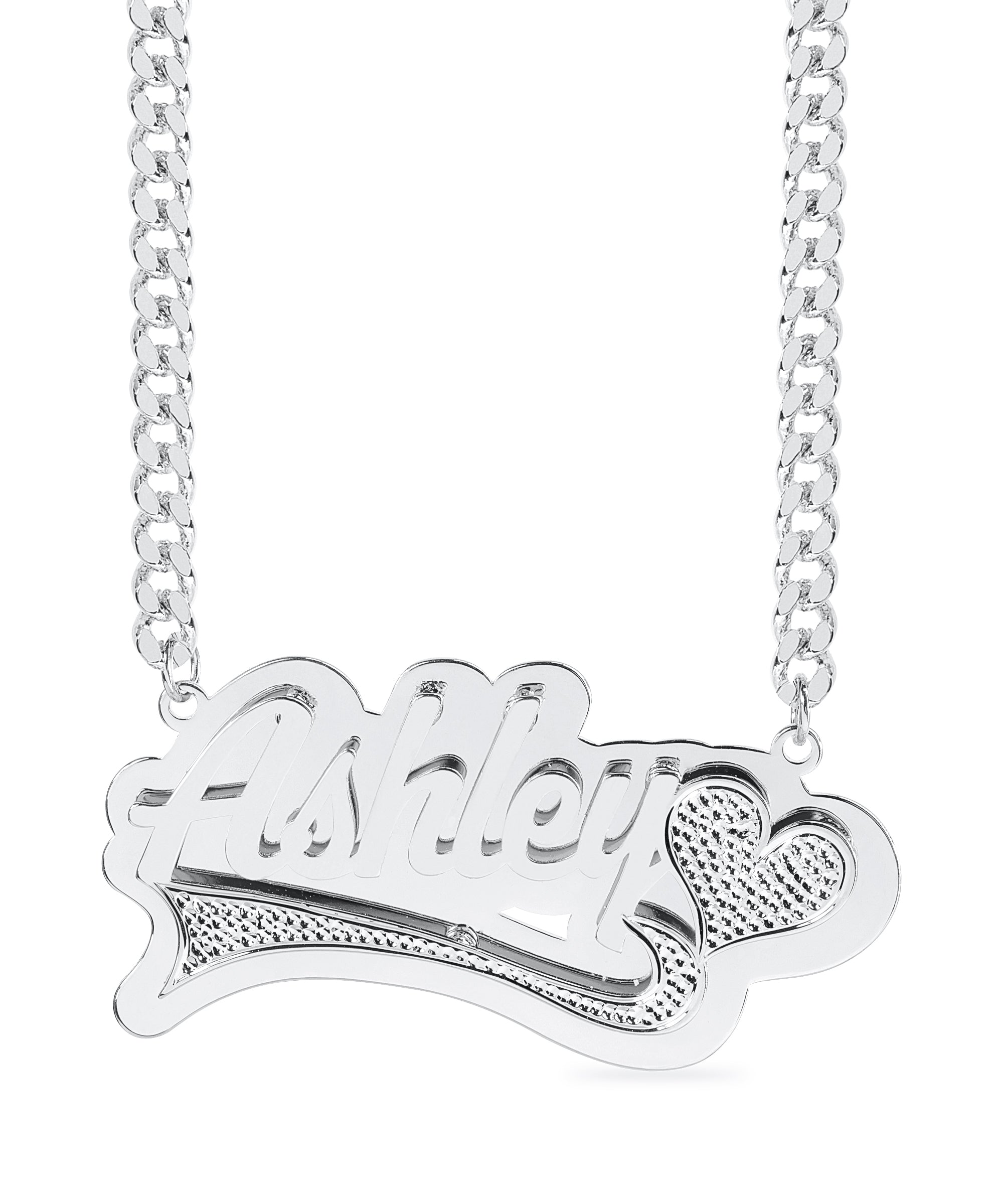 Double Plated Name Necklace with Beading Heart and Tail "Ashley"