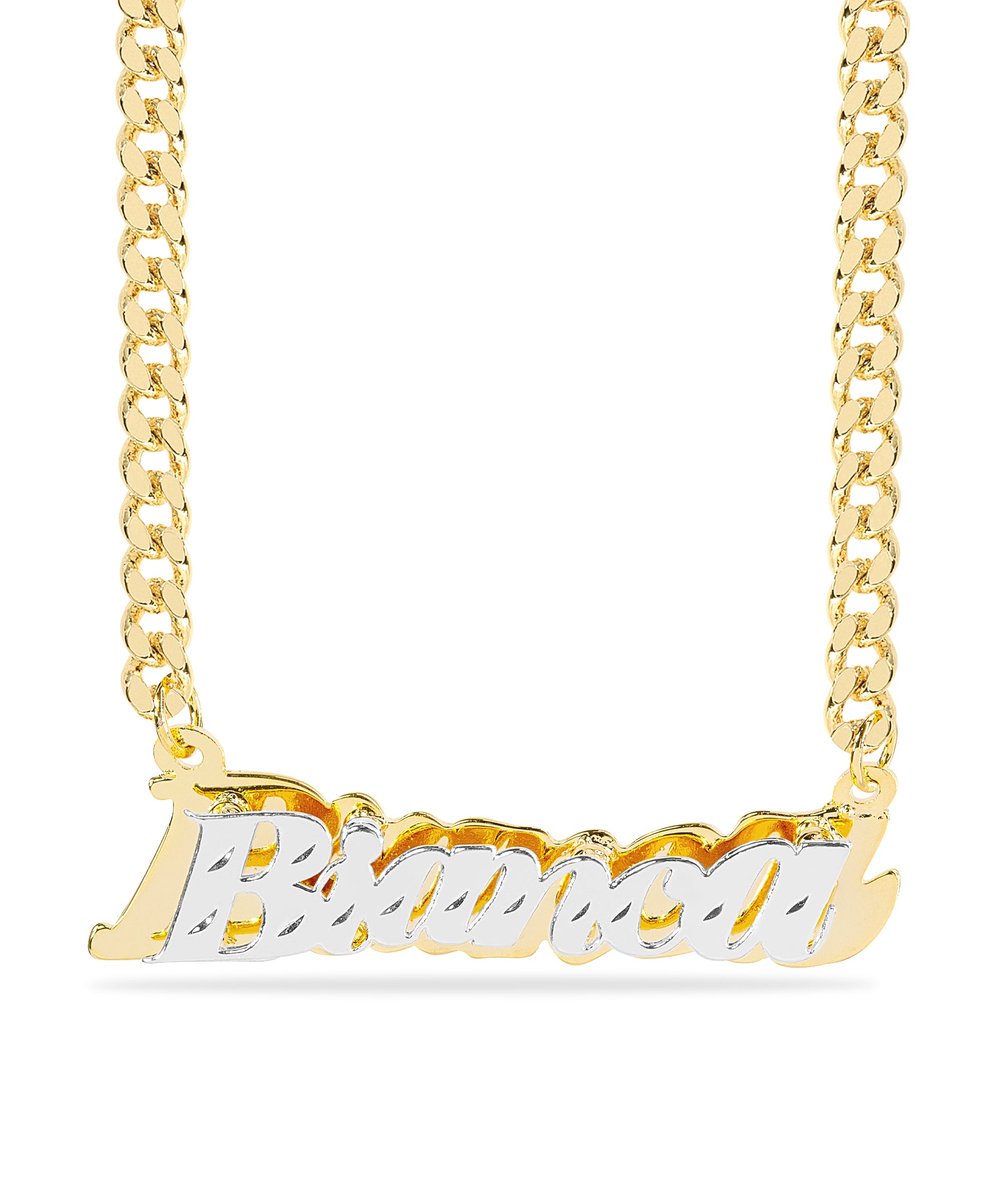 Double Plated Matchmaker Name Necklace with Cuban Chain