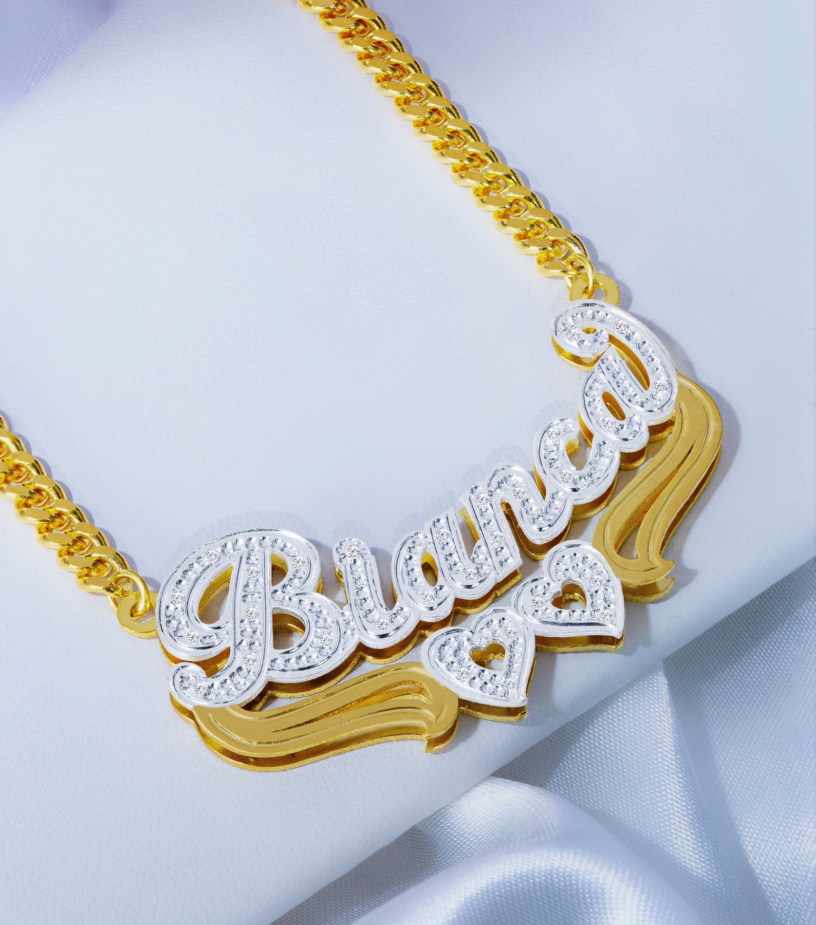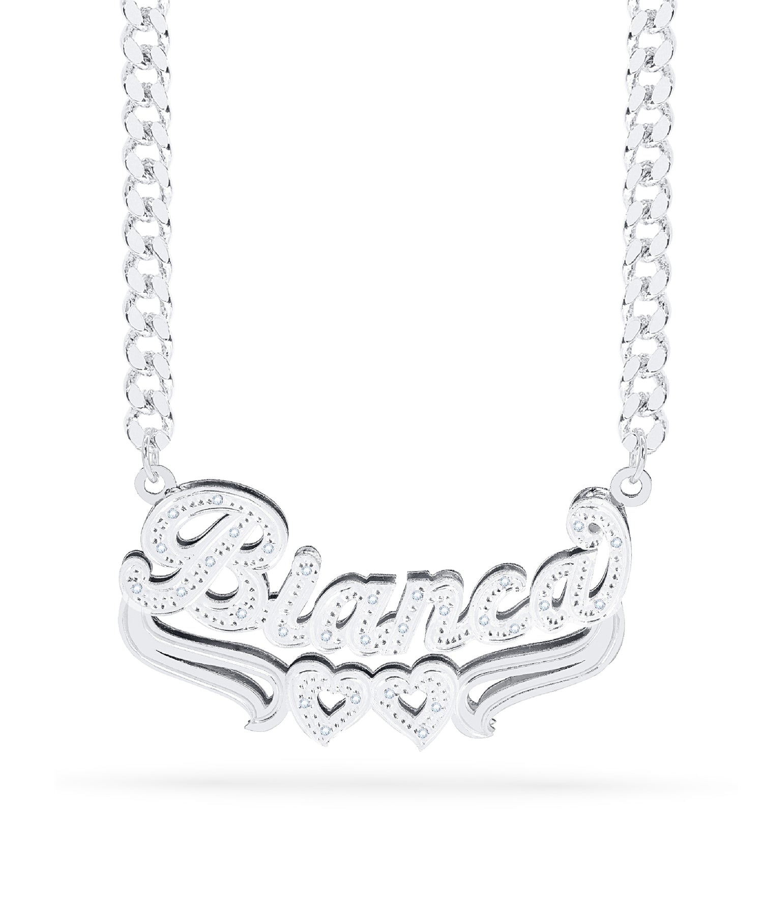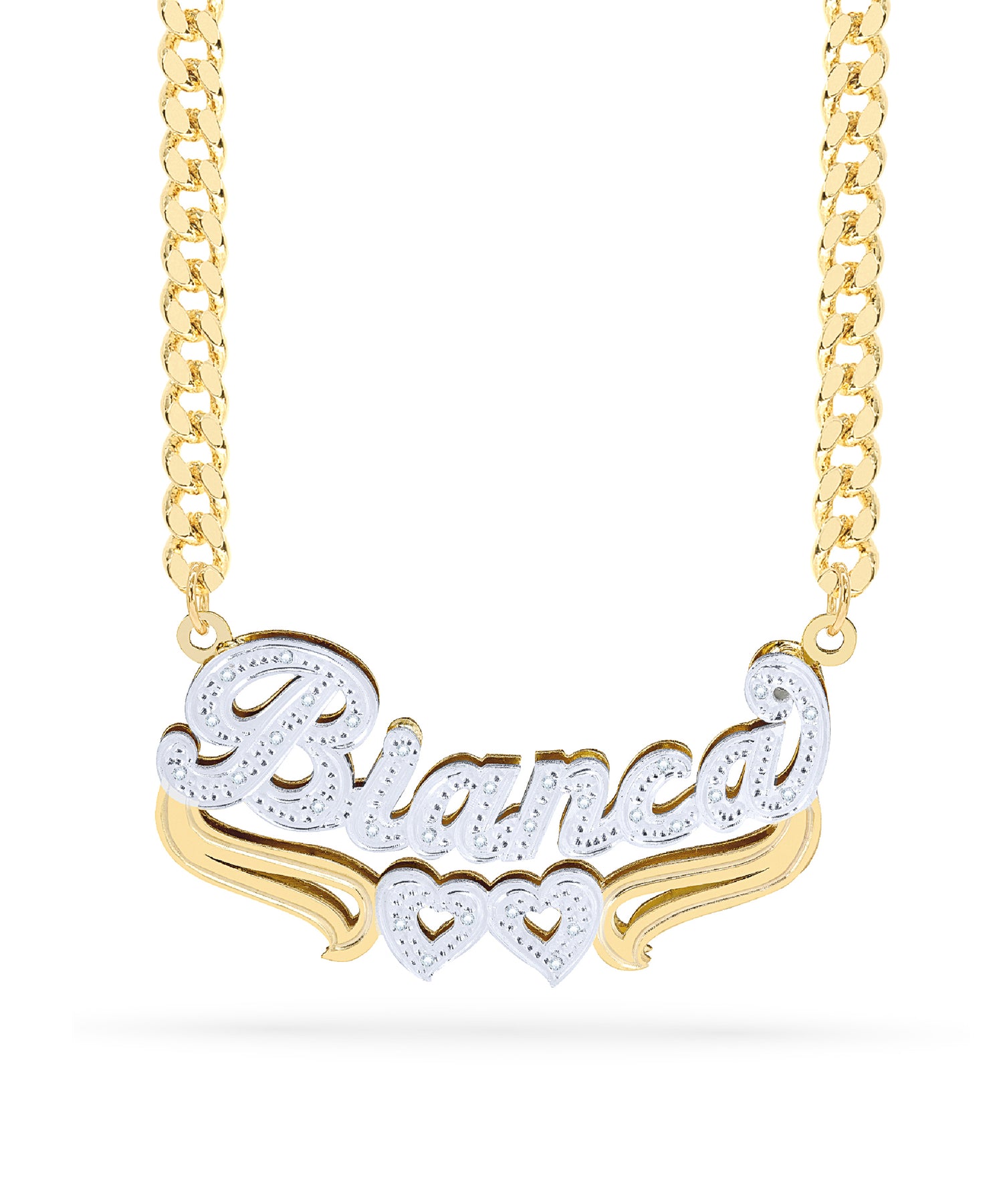 Diamond Double Nameplate Necklace w/ Hearts "Bianca"
