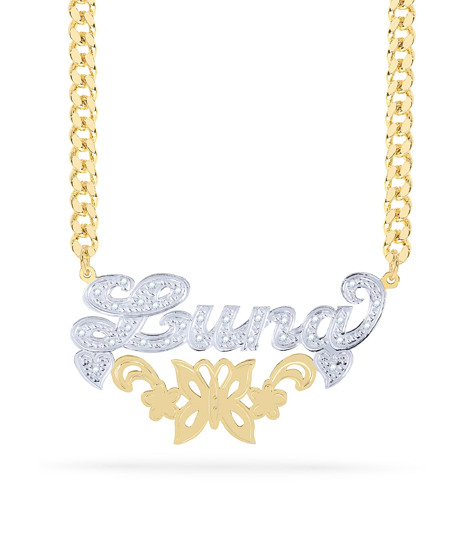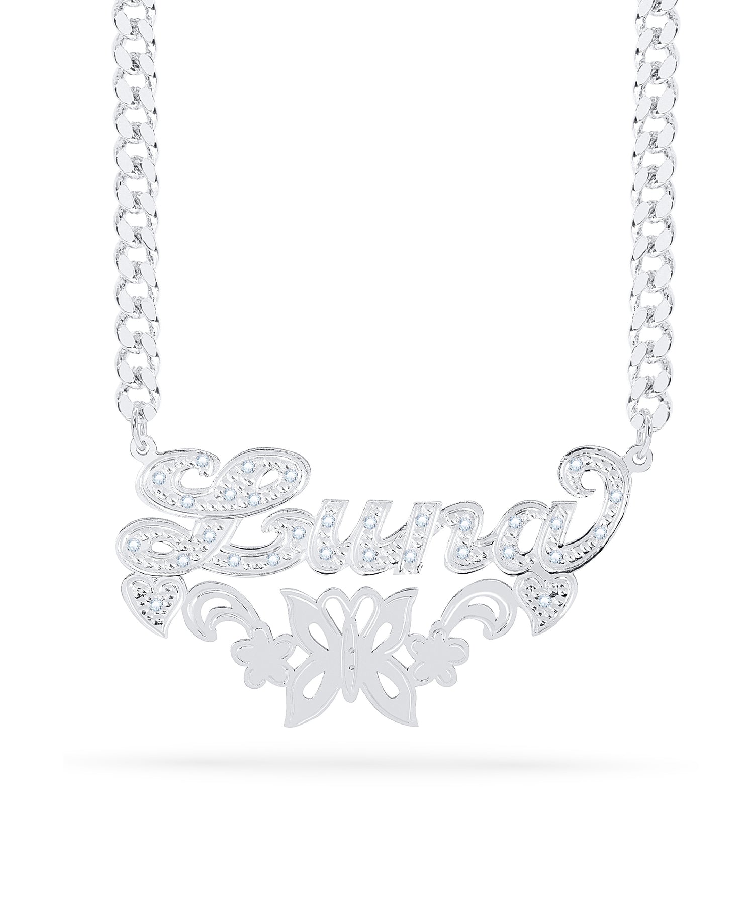 Diamond Butterfly Custom Nameplate Necklace "Luna"