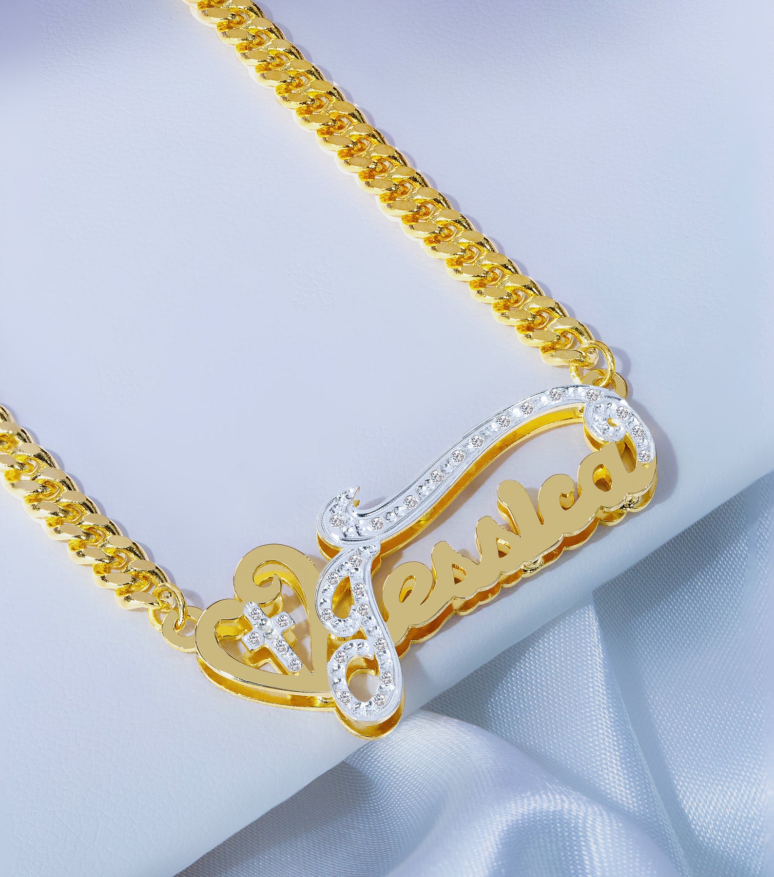 Diamond Double Plated Nameplate Necklace "Jessica"