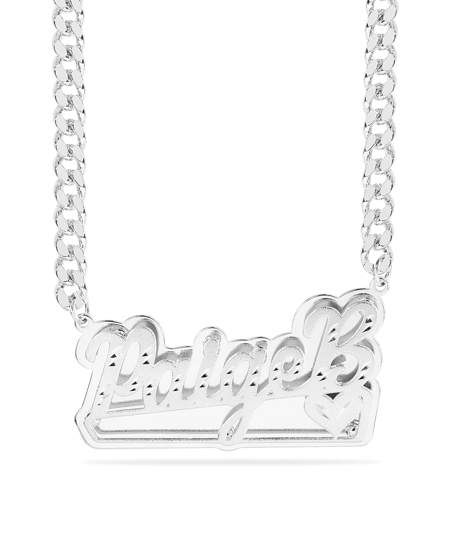 Make a bold, personalized statement with our Sterling Silver Double Plated Name Necklace, elegantly crafted to capture attention and sentiment. This stunning piece features a beautifully scripted custom nameplate, double plated in premium sterling silver for lasting shine and durability.